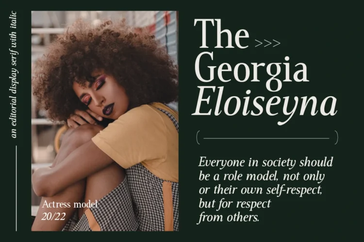 Geffroy Eleonora Serif is a classy eighties magazine-inspired font – with complementary italic versions. Both come in two versions one with more contrast and sharper than the other. In true Eighties style. This font looks premium and is very suitable for your design needs such as invitations, labels, logos, magazines, books, greeting / wedding cards, packaging, fashion, make up, stationery, novels, labels or any type of advertising purpose.